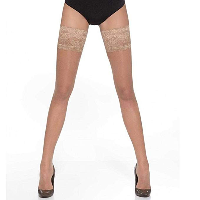 Ajoutez une touche d'élégance à vos jambes avec cette ravissante paire de bas autofixants...